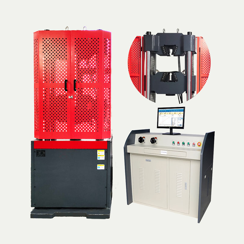 主機為兩立柱、兩絲杠、油缸下置式,拉伸空間位于主機的上方,壓縮、彎曲試驗空間位于主機下橫梁和工作臺之間。數據測控系統采用高精度A/D轉換器,分別對力、位移、變形進行數據采集,具有測量精度高,可靠性好等特點,滿足GB、ISO、ASTM等標準對于金屬拉伸、壓縮、彎曲、剪切等試驗要求。