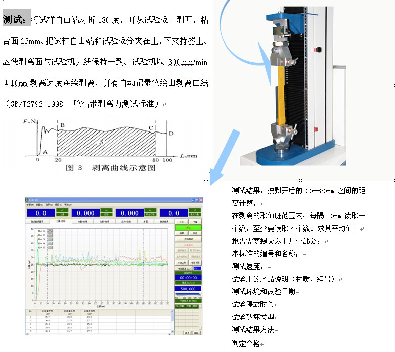 一、試驗目的:測試不干膠材料、保護膜等膠粘材料的剝離強度及離型材料的離型力;